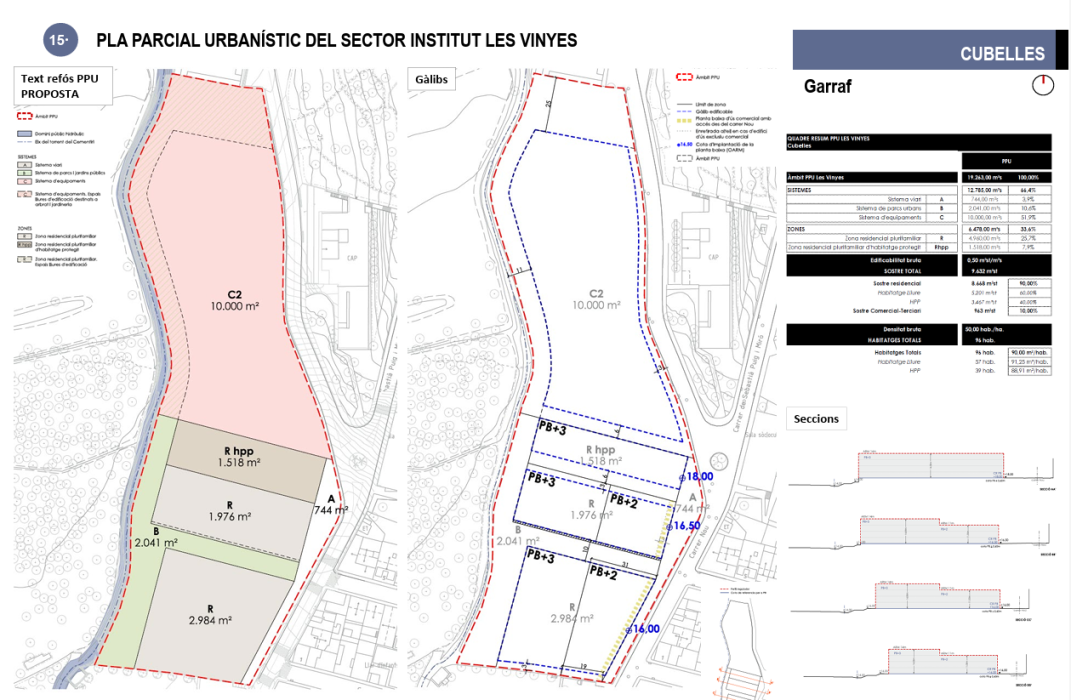 Ara, el pla parcial urbanístic determina que la part més nord, al costat del cementiri, queda reservada amb uns 10.000 metres quadrats per a la construcció del nou institut Les Vinyes. Una actuació que dependrà de la Generalitat i que, en principi, no es podrà fer abans del 2031.