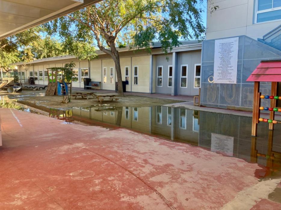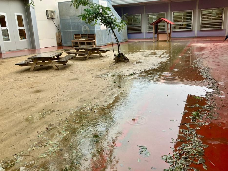 Sobre l'estancament d'aigua al pati de l'escola Vora del Mar, la regidora d'Ensenyament Renata Bedós assegura que han parlat amb la concessionària AGBAR per buscar-hi una solució davant de la inacció de la Generalitat.